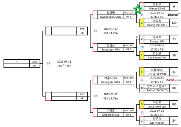 | 하나카드 LPBA 챔피언십 32강 대진표 - 64강 경기결과 (0) | 2022.07.15 |