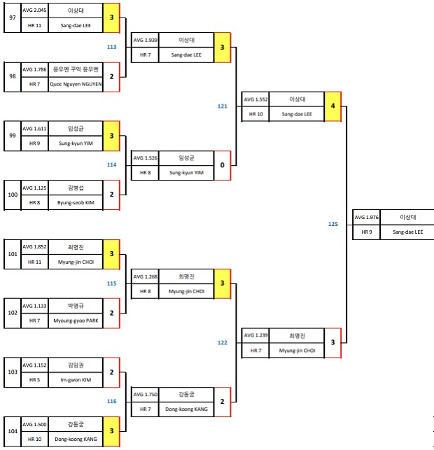 16강에서는 베트남 당구선수 응우옌 꾸억 선수를 3대 2로 이기고 8강에서는 임성균 선수를 3대 0으로 꺾었으며, 준결승전에서는 PBA 드림투어 출신 최명진 당구선수를 맞아 4대 3으로 승리하며 결승전에 진출하였습니다.