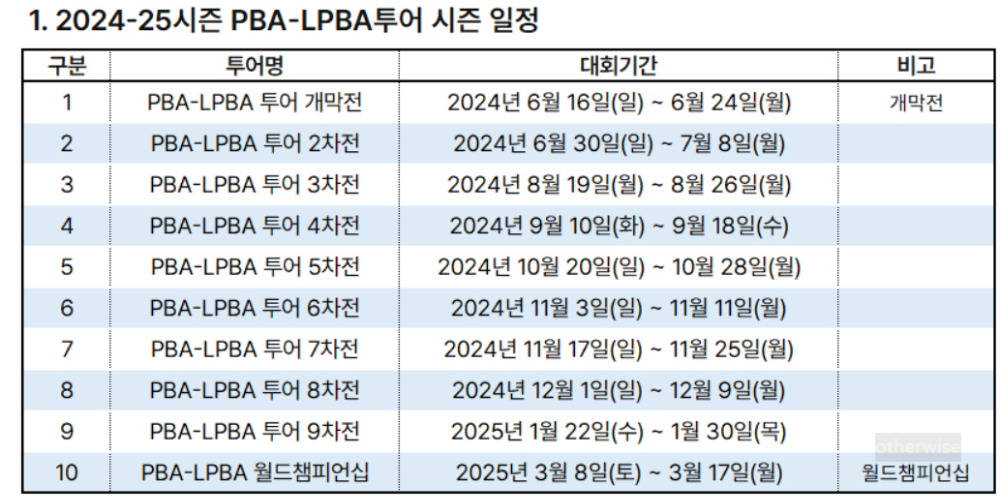 프로당구 PBA 개막전 6월 16일, 2024-25시즌 10개 투어 대장정