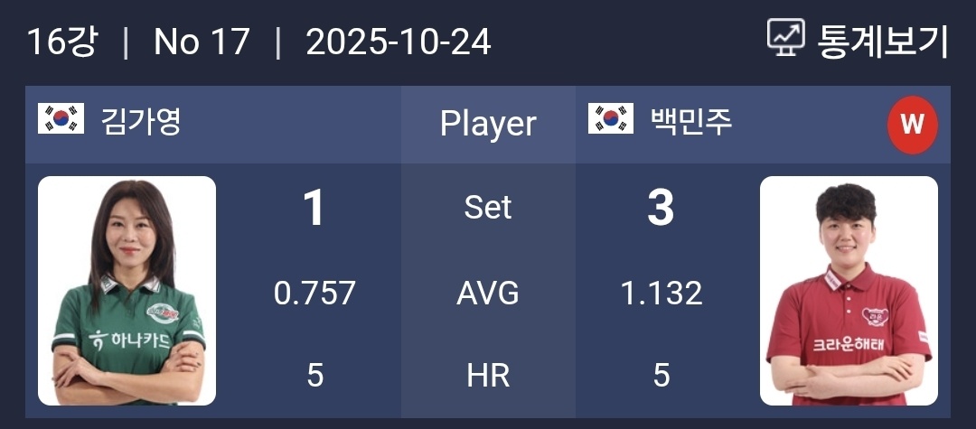 오늘 김가영 선수를 잡은 백민주 선수의 경기결과는 나오는대로 전달드리겠습니다.