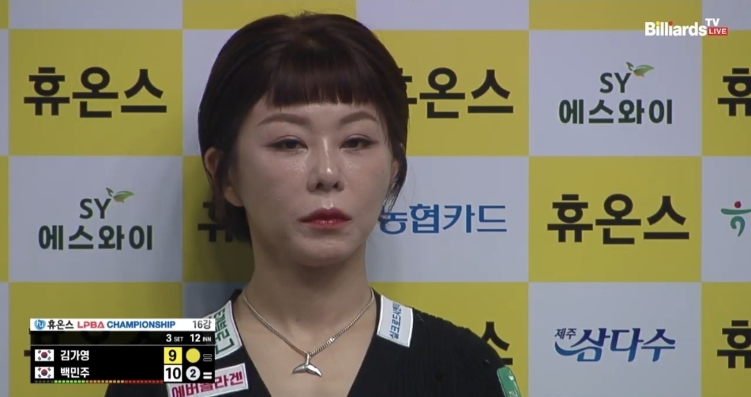 백민주 선수는 최종 세트 스코어 3 대 1로 김가영 선수를 휴온스 lpba 챔피언십 16강에서 물리쳤습니다. 이로서 김가영의 8강 진출은 좌절 되었습니다.