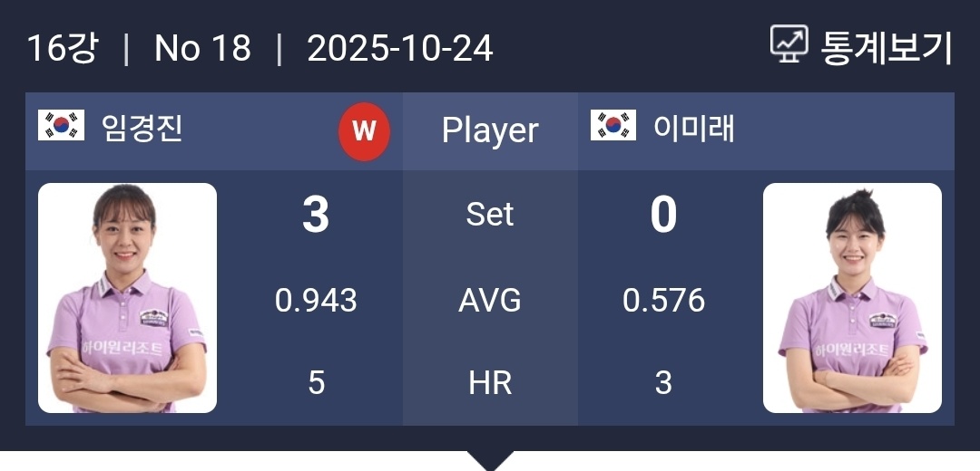오늘 휴온스 LPBA 챔피언십 16강 경기에서 임경진 당구 선수가 당구의 미래라 불리는 이미래 선수를 3 대 0으로 완파하며 8강에 진출하였습니다.