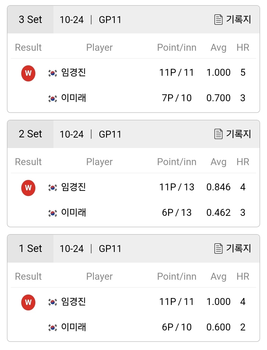 경기 전에는 객관적 전력상 이미래 선수의 우세를 점치는 당구 팬들과 전문가들이 많았습니다. 하지만 오늘 경기 결과는 임경진 선수의 승리로 끝이 났습니다.