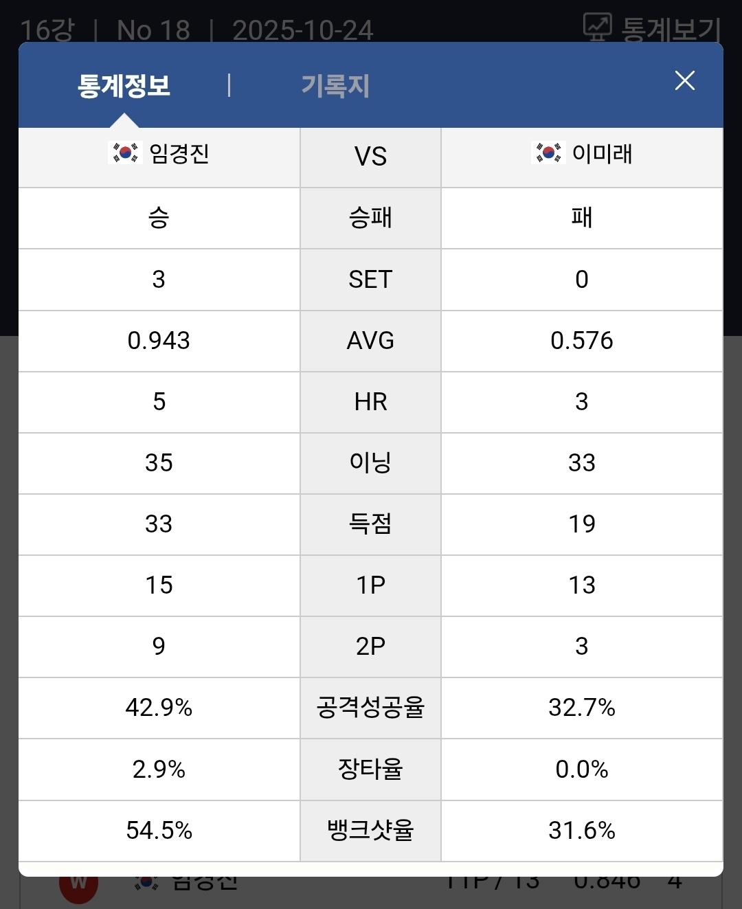 이미래 VS 임경진 32강 경기결과