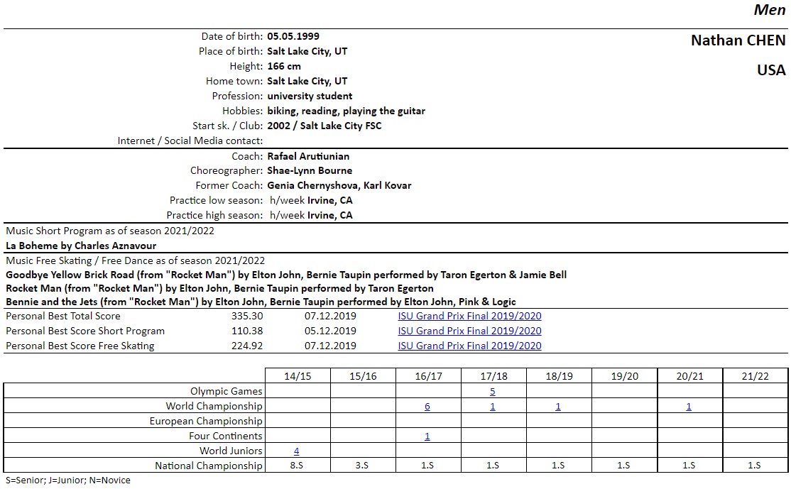 개인 최고 총점 273.22 / 23.01.2022 2022년 4대륙 선수권 대회