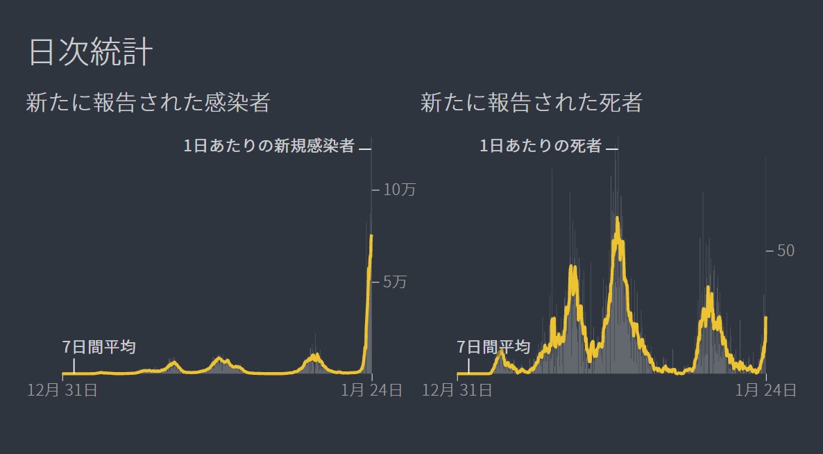 | 일본 코로나 바이러스 감염자 수 하루 3만명 돌파 (1월 18일 코로나 신규 확진자 수) (0) | 2022.01.19 |