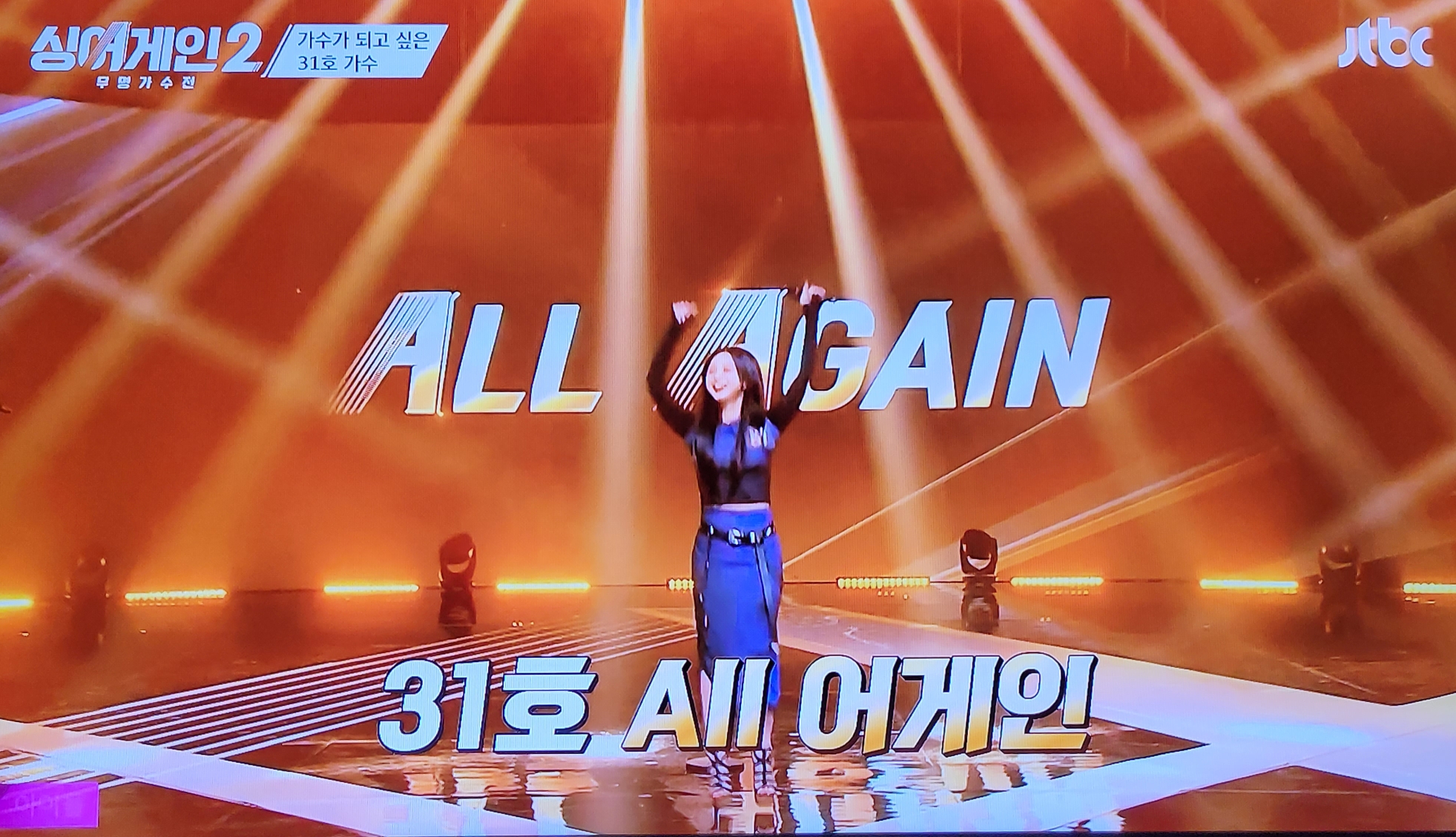 싱어게인 시즌2 31호 가수는 블랙핑크의 곡 "How you like that" 을 열창하여 심사위원 8명으로 부터 모두 어게인 합격 버튼을 받아 올어게인(all again) 합격자로 2라운드에 진출하게 되었습니다.