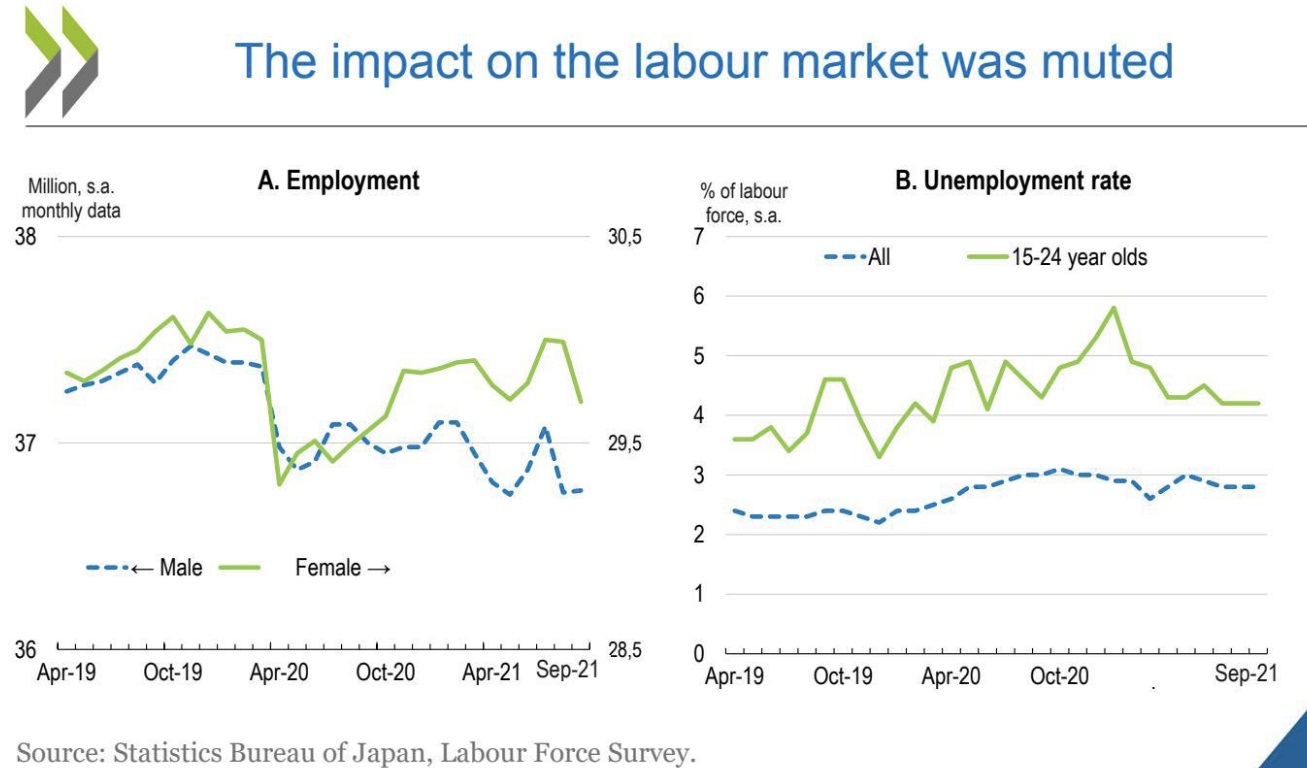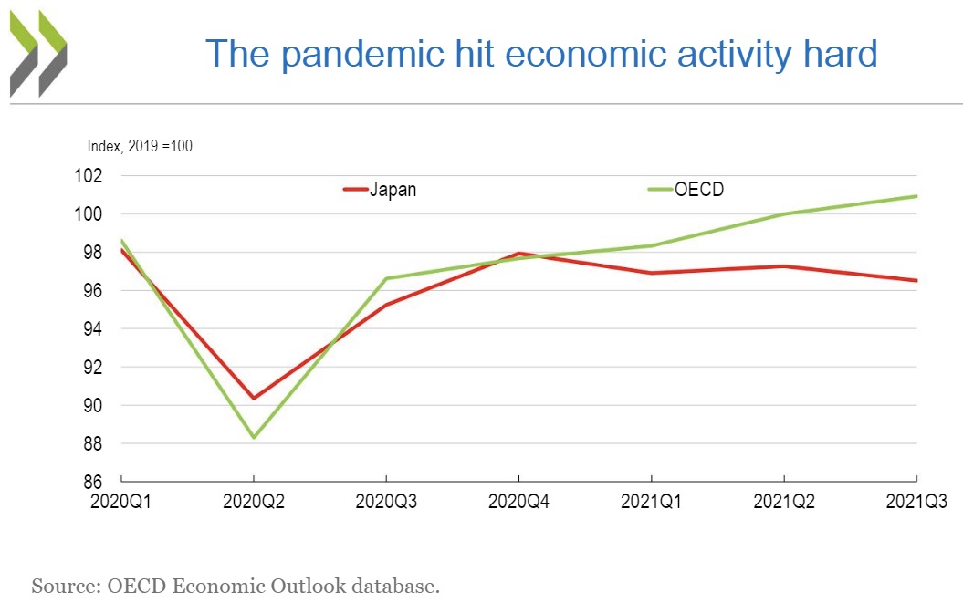 일본은 백신 접종률이 상승하고 수출이 회복되면서 신종 코로나 바이러스로 인한 타격에서 회복하고 있지만 과제는 남아 있습니다. OECD의새로운 보고서에 따르면 디지털 전환(벽혁)을 확대 촉진하기 위한 기술, 교육, 전문적인 훈련에 투자하는 것이 생산성 향상과 공재정 강화로 이어진다는 것입니다.