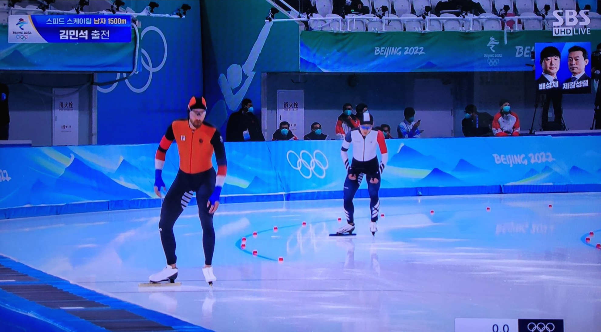 이번 베이징 올림픽 동메달 스피드스케이팅 남자 1,500m 경기에서 아시아 유일의 메달리스트 지위도 이어갔습니다. 김민석 선수는 이날 11조 인코스에서 세계 기록 보유자 네덜란드의 키엘드 나위스 선수와 같은 조에서 함께 레이스를 펼쳤습니다.