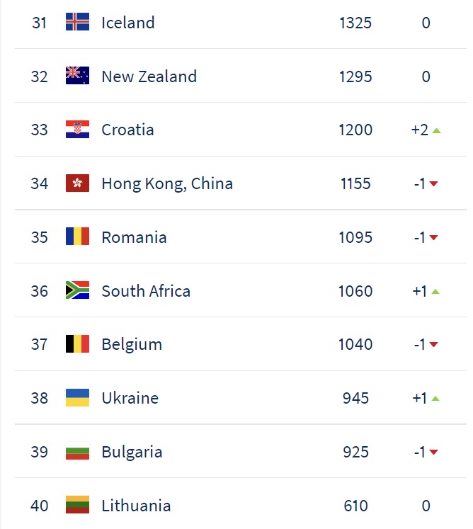 | 38 | Ukraine | 945 | +1
