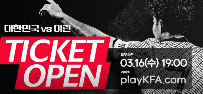 (2022/3/15 KFA 뉴스 보도자료) 6만 관중을 목표로 이란전 티켓 판매가 시작됩니다. 대한축구협회는 오는 24일(목) 저녁 8시 서울월드컵경기장에서 열리는 2022 카타르 월드컵 아시아 최종예선 9차전 이란과의 경기 입장권을 16일부터 판매한다고 발표했습니다. 16일 저녁 7시부터 대한축구협회의 새 마케팅 플랫폼인 플레이KFA(www.playkfa.com)에 접속해 회원 가입후 구입할 수 있다. 입장객 숫자 제한 없이 6만5천석 좌석 전체를 판매합니다.