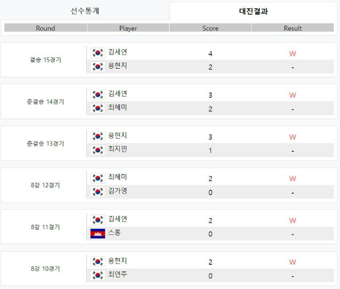 결승 15경기 : 김세연 4 W 용현지 2 -