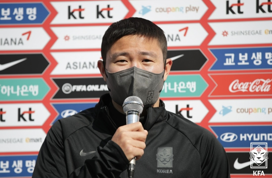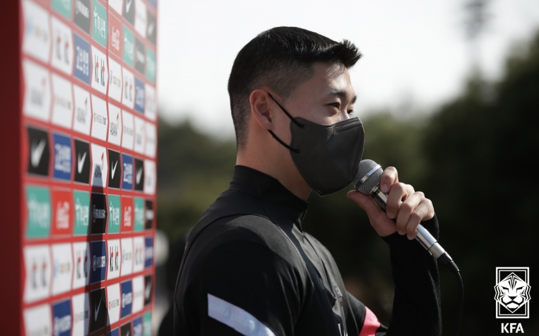 남자 국가대표팀 공격수 조규성(김천상무)이 손흥민(토트넘홋스퍼)과의 호흡에 대해 자신감을 보였습다. 파울루 벤투 감독이 이끄는 남자 국가대표팀은 2022 FIFA 카타르 월드컵 아시아 최종예선 9, 10차전을 위해 21일 파주NFC에 소집됐습니다. 22일 오후 훈련 전 인터뷰에 임한 조규성은 공격수로서 자신의 역할에 충실하겠다는 각오를 밝혔습니다.