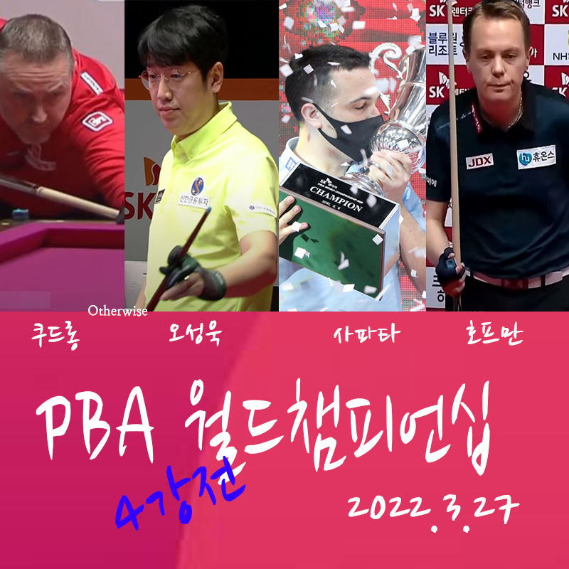 SK렌터카 LPBA 월드챔피언십 2022- 4강 준결승 대진표의 3월27일 두번째 경기는 쿠드롱 오성욱 대결로 저녁 9시 30분에 SBS스포츠, MBC스포츠, PBA&GOLF 채널에서 동시에 TV중게방송 됩니다.