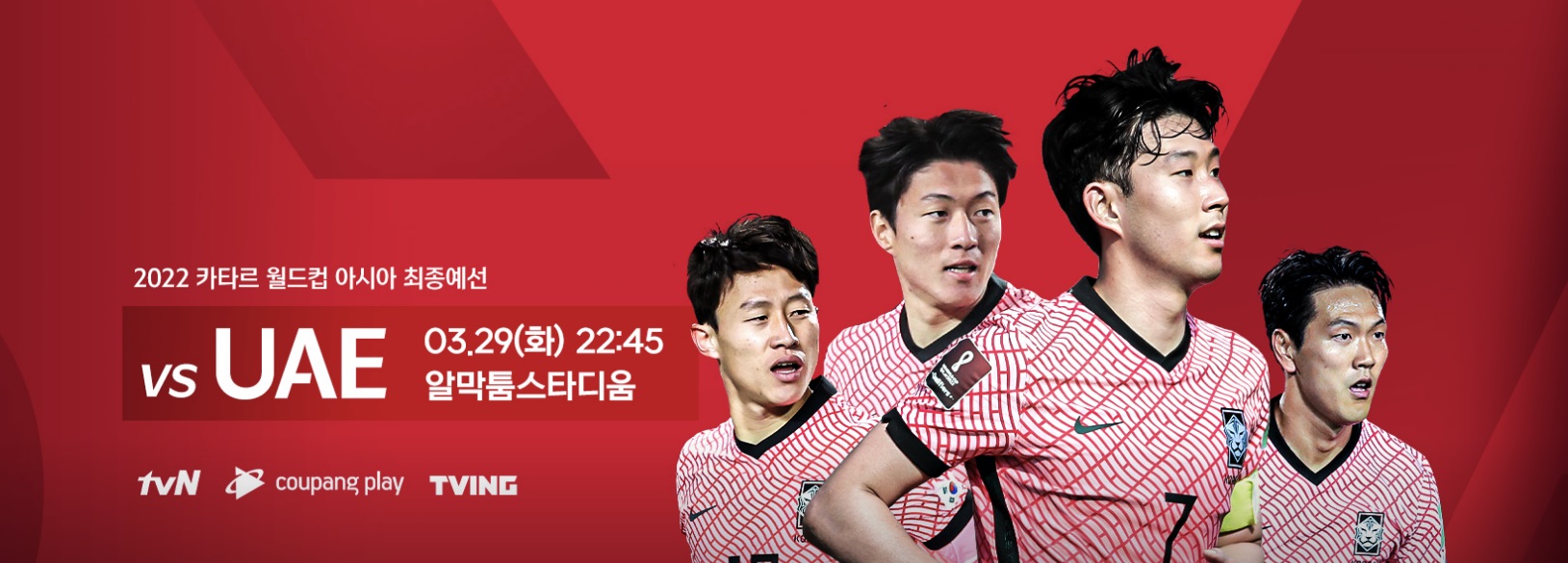 대한민국 남자 축구 대표팀 카타르 월드컵 최종 예선 마지막 경기 10차전, 한국 UAE전 경기시간은 3월 29일 밤 10시 45분이며, 한국 UAE전 축구 경기의 TV중계방송은 tvN에서 생중계되며, 인터넷에서는 쿠팡플레이와 티빙에서 대표팀 축구를 생중계로 볼 수 있습니다.