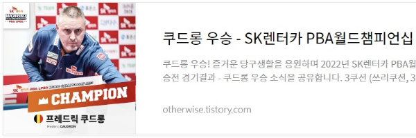 3월13일 PBA 프로당구협회에서 PBA홈페이지를 통해 SK렌터카 PBA-LPBA 월드 챔피언십 2022 대회요강을 수정 공지하였습니다. 얼핏 보기에 가장 큰 차이점은 지난 2021년 월드챔피언십 대비하여 우승자