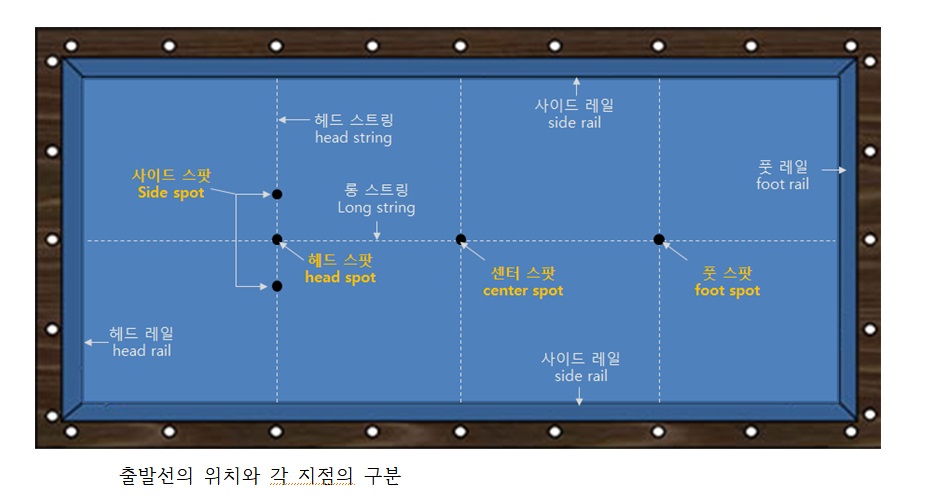 3.2.1.1. 캐롬 경기를 시작하기 위한 출발선(spots)의 위치와 각 지점들의 구분은 아래 <그림 7>과 같다.