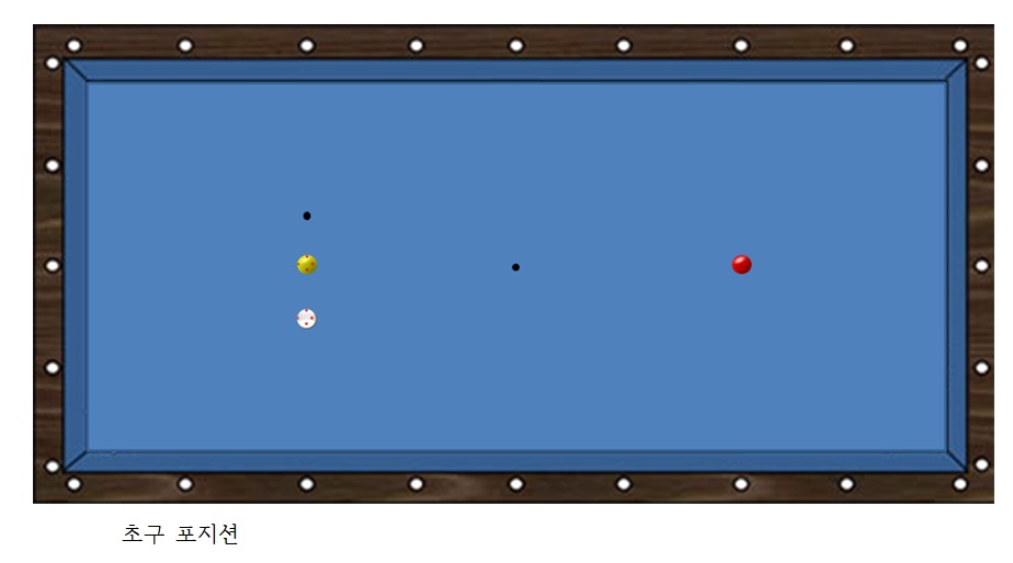 ➣ 1쿠션에 관해서는 세 개의 공이 최초 초구(serve)공격 위치에 놓여진다.