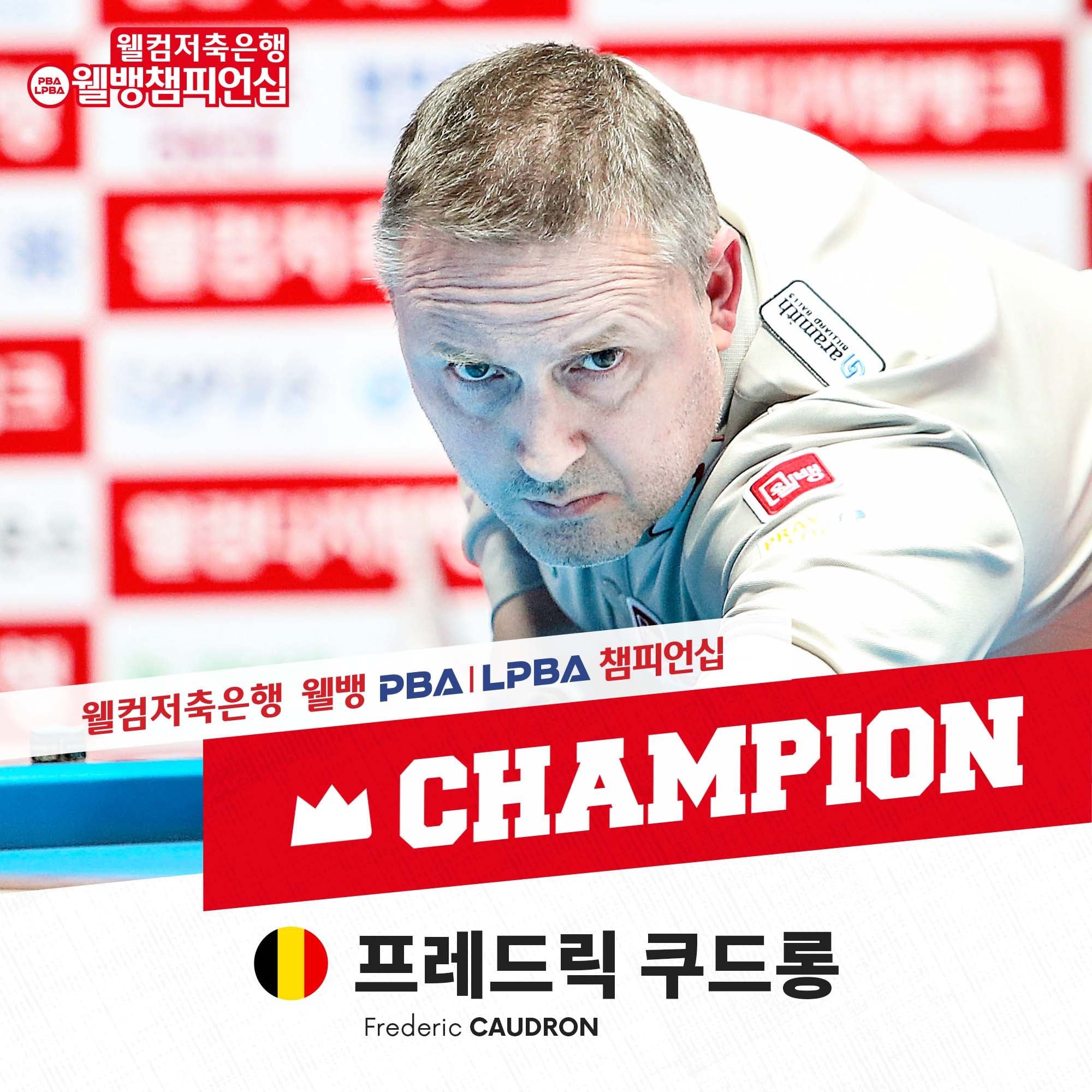쿠드롱 선수의 PBA투어 웰컴저축 은행 PBA챔피언십 우승 포스터입니다.