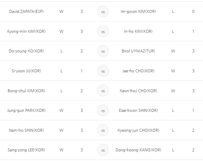 비롤 위마즈 선수는 고도영 선수와 맞붙어 세트스코어 3:2로 어렵게 승리했으며, 조재호 선수는 주시윤 선수를 상대로 세트스코어 3:1로 승리하며 16강 대진표에 이름을 올렸습니다.