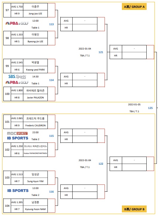 지난해 12월 29일부터 2022년 1월 5일까지 열리는 NH농협카드 PBA - LPBA 챔피언십 21-22이 열리고 있습니다.