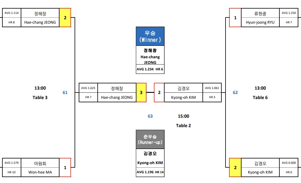 2021-2022 Helix PBA 챌린지투어 6차전 경기결과 우승자는 정해창 당구선수로 확정이 되었습니다. 축하드립니다. Helix PBA 챌린지투어 6차전 최종 대진표(8강 - 결승) 및 상세 경기결과는 아래 자료를 참고바랍니다.